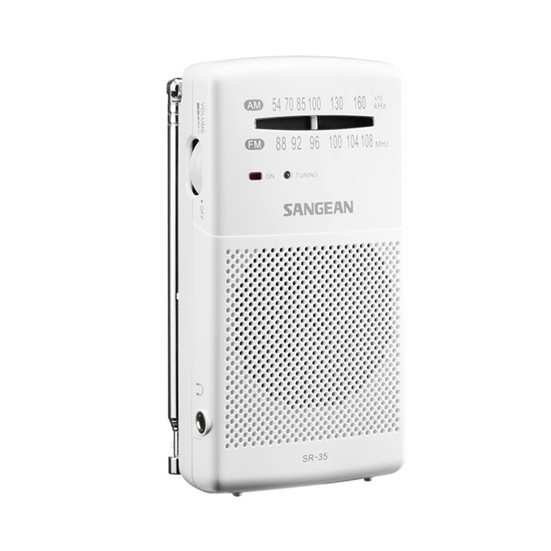 Radio analógica de bolsillo FM/AM Sangean POCKET 100 SR-35 con altavoz integrado, en color blanco