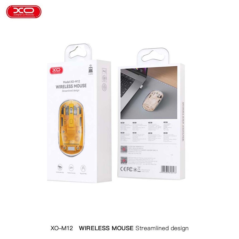 Ratón Inalámbrico Transparente XO M12 modo dual Wireless 2.4Ghz + Bluetooth en color naranja