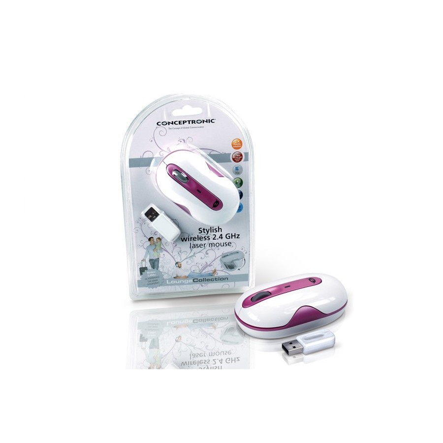 Raton Láser Inalámbrico 2.4Ghz Conceptronic CLLMTRL24P Rosa