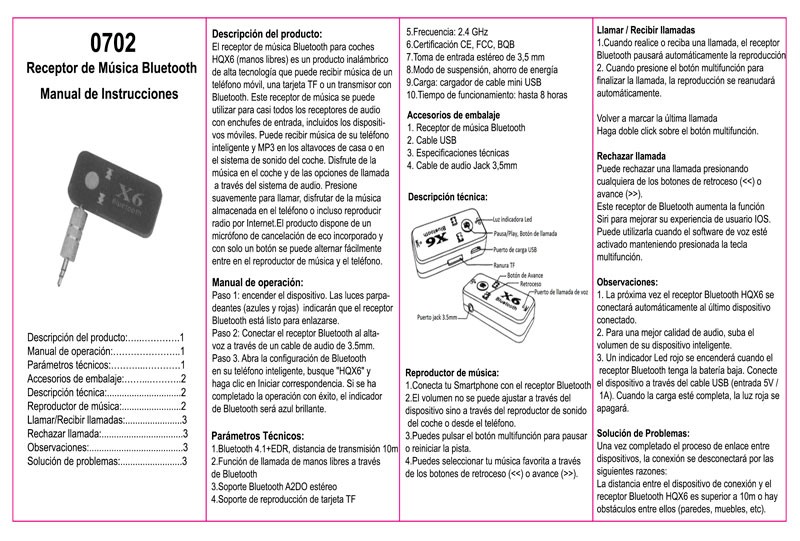 Dispositivo receptor de bluetooth, se conecta mediante un Jack de 3.5mm estereo. Muy fácil de emparejar con cualquier dispositivo móvil o MP3 y la radio de su coche, aparado reproductor de música. O para emparejar un segundo dispositivo en el coche, y poder contestar dos teléfonos simultáneamente
