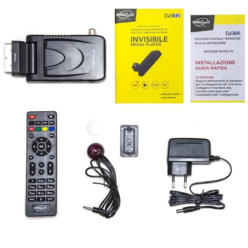 Receptor TDT DVB-T2 DIGIQuest INVISIBILE RIDC1227 HD articulado con salida HDMI, Euronector, Lan y USB 2.0