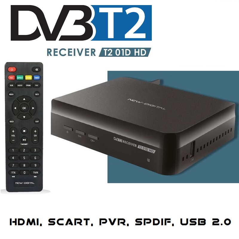 RECEPTOR DVB-T2 NEW DIGITAL T2 01D HD HDMI, SCART, SPDIF, USB 2.0