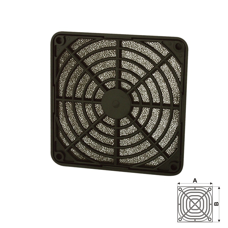 Rejilla protectora con filtro de material plástico 92x92mm en color negro