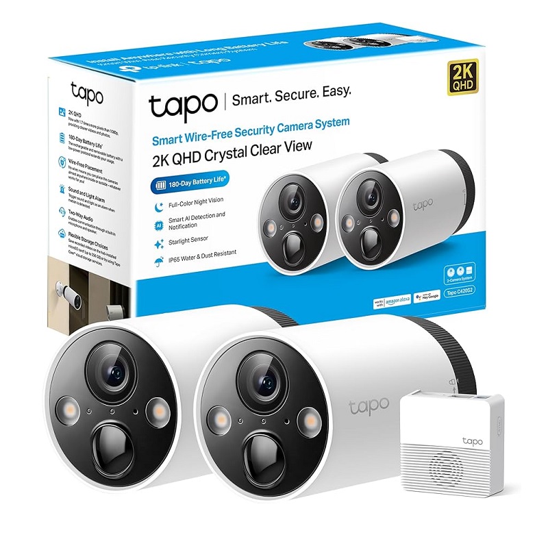 Kit de 2 Cámaras de vigilancia IP WiFi con batería Tp-Link Tapo C420S2, grabación de vídeo 2K QHD, Visión nocturna, Alarma, Detección IA
