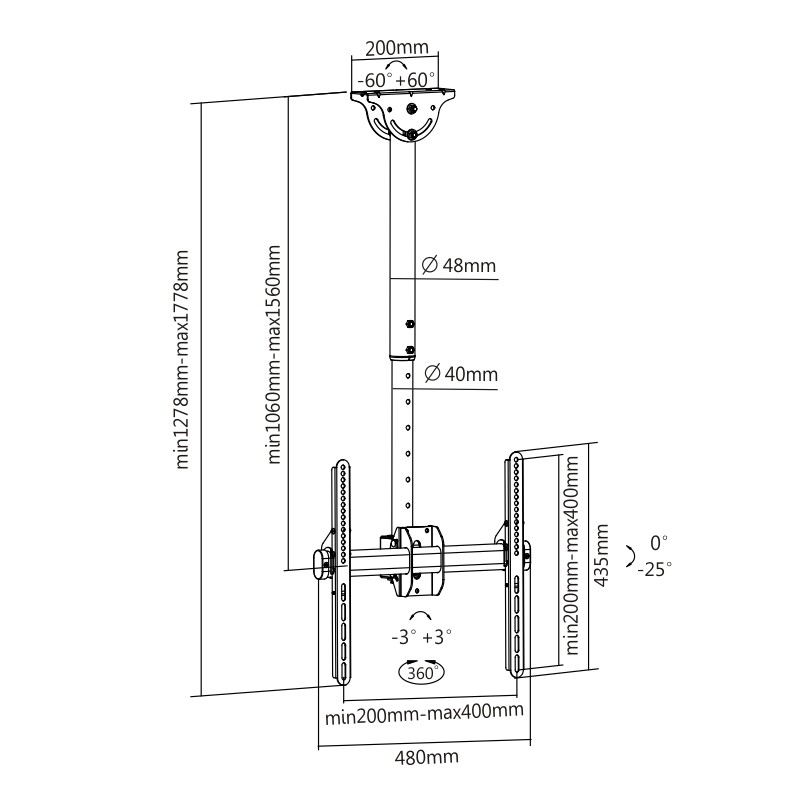 – Distancia entre techo y pantalla: ajustable entre 1060 y 1560 mm