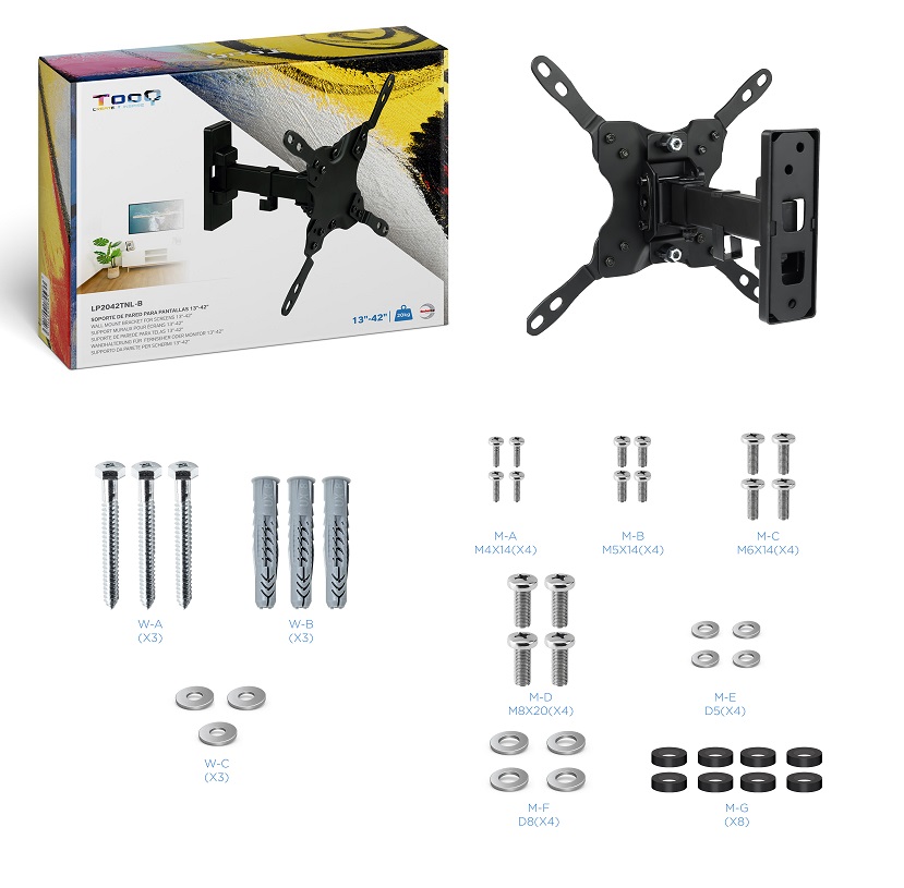 Soporte de pared para pantallas 13″- 42″ Tooq LP2042TNL-B peso máximo 20Kg
