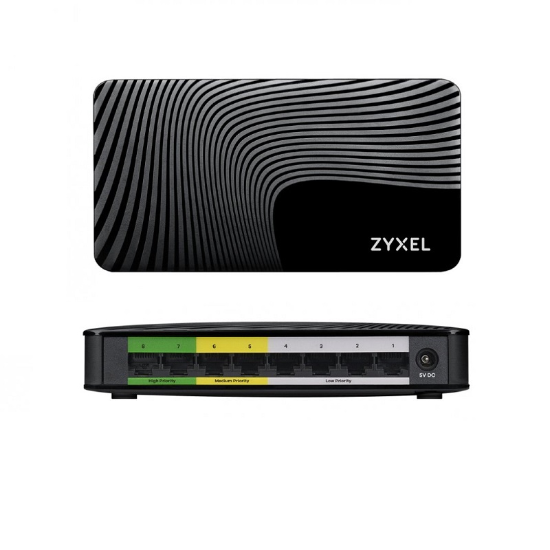 El switch Gigabit Ethernet de 8 puertos Zyxel GS-108S v2 puede conectar fácilmente varios dispositivos multimedia simultáneamente a su red a una velocidad Gigabit ultrarrápida.
