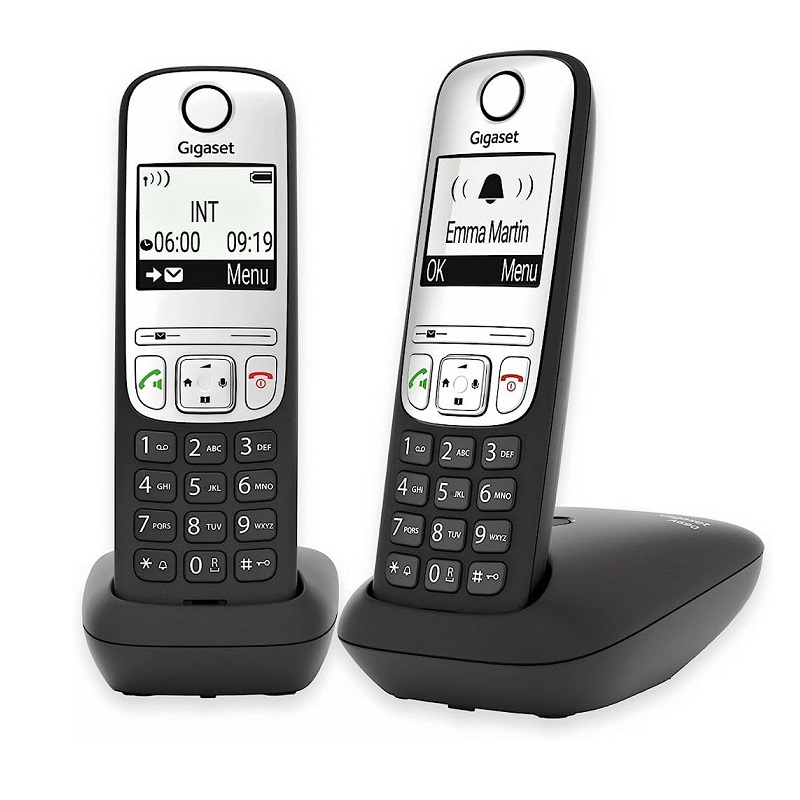Simplemente suena bien: un teléfono DECT con excelentes funciones de audio. La elección es suya, con los Gigaset A690 Duo puede realizar una llamada utilizando el teléfono o en modo manos libres, lo que le brinda la libertad de hacer otra cosa al mismo tiempo e incluso permitir que otros se unan a la conversación.