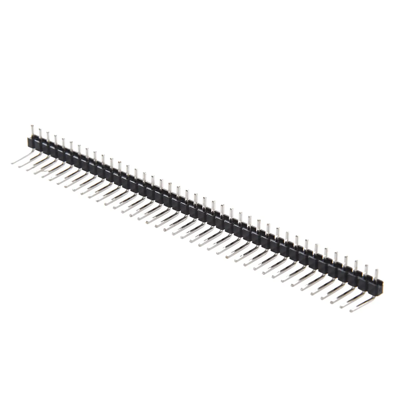 Tira de pines macho 40 terminales 90º (acodado) paso 2,54mm 1 fila, para circuito impreso.