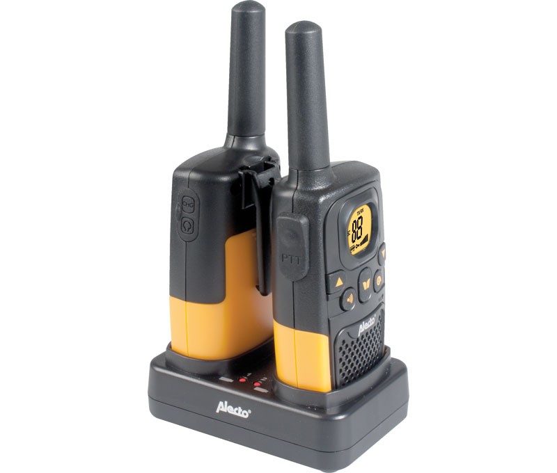 Los walkie-talkies Alecto FR-26 son ideales para comunicarse libremente en una distancia de hasta 7 kilómetros. Como todos los wakie-talkies Alecto los FR-26 utilizan el estandar PMR446 y por tanto pueden utilizarse en combinación con todos los otros modelos de la marca compatibles con este estandar. El cuerpo de los walkie-talkies FR-26 es tiene un diseño resistente que lo hace especialmente adecuado para entornos de trabajo como construcciones, almacenes, talleres, etc. también son aptos para vacaciones, excursiones, comunicar dos coches realizando la misma ruta, etc. Incluyen baterías recargables y soporte con función de cargador inteligente que hace que la carga debaterías sea tan sencillo como colocar los walkie-talkies sobre el soporte. Una vez cargadas por completo, las baterías tienen una autonomía de hasta 3 horas.